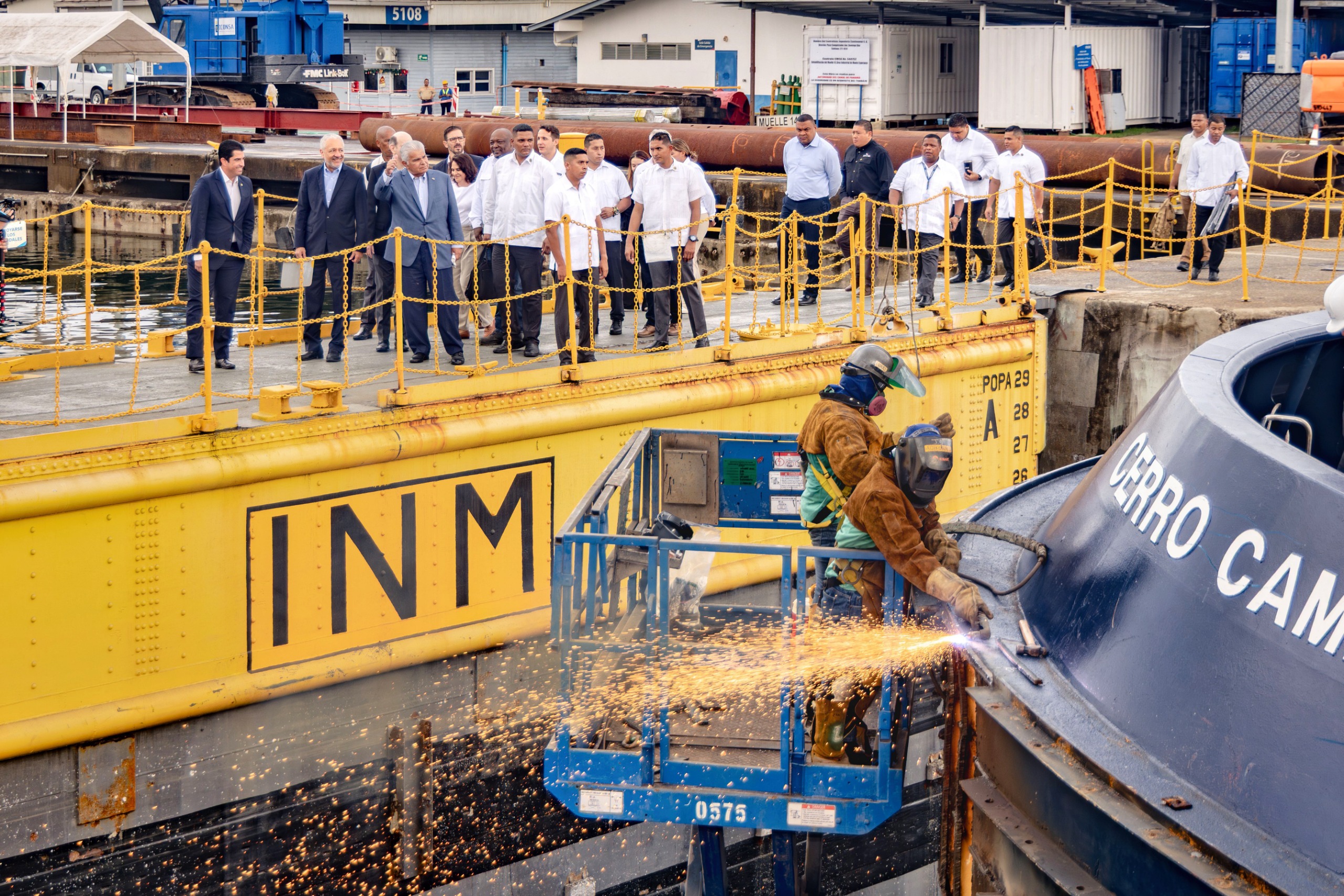 Como parte del acto principal, se incluyó un recorrido por las instalaciones del dique seco en donde se da mantenimiento a los equipos industriales del Canal. Además del presidente de la República, participaron el ministro para Asuntos del Canal, Jose Ramón Icaza; el ministro de Economía, Felipe Chapman; el administrador del Canal, Ricaurte Vásquez Morales, y la subadministradora del Canal, Ilya Espino de Marotta, entre otros invitados especiales.