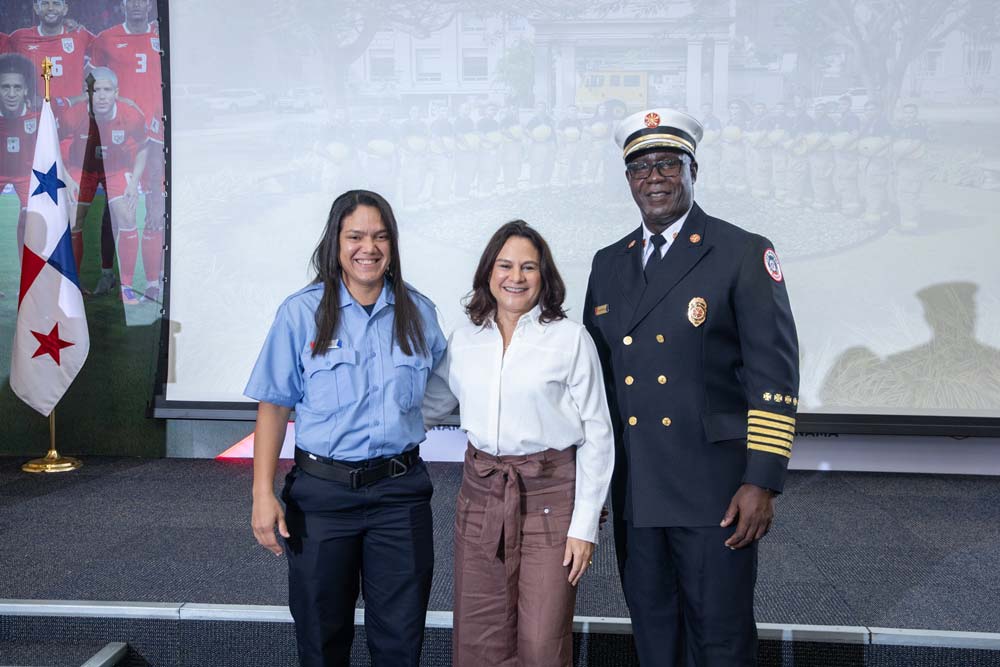 Entre los graduandos se destacó la participación de Grecia Pilides, quien se convierte en la única mujer que actualmente trabaja como bombera en el Canal de Panamá, marcando un nuevo paso hacia una mayor representación femenina dentro de esta unidad especializada.